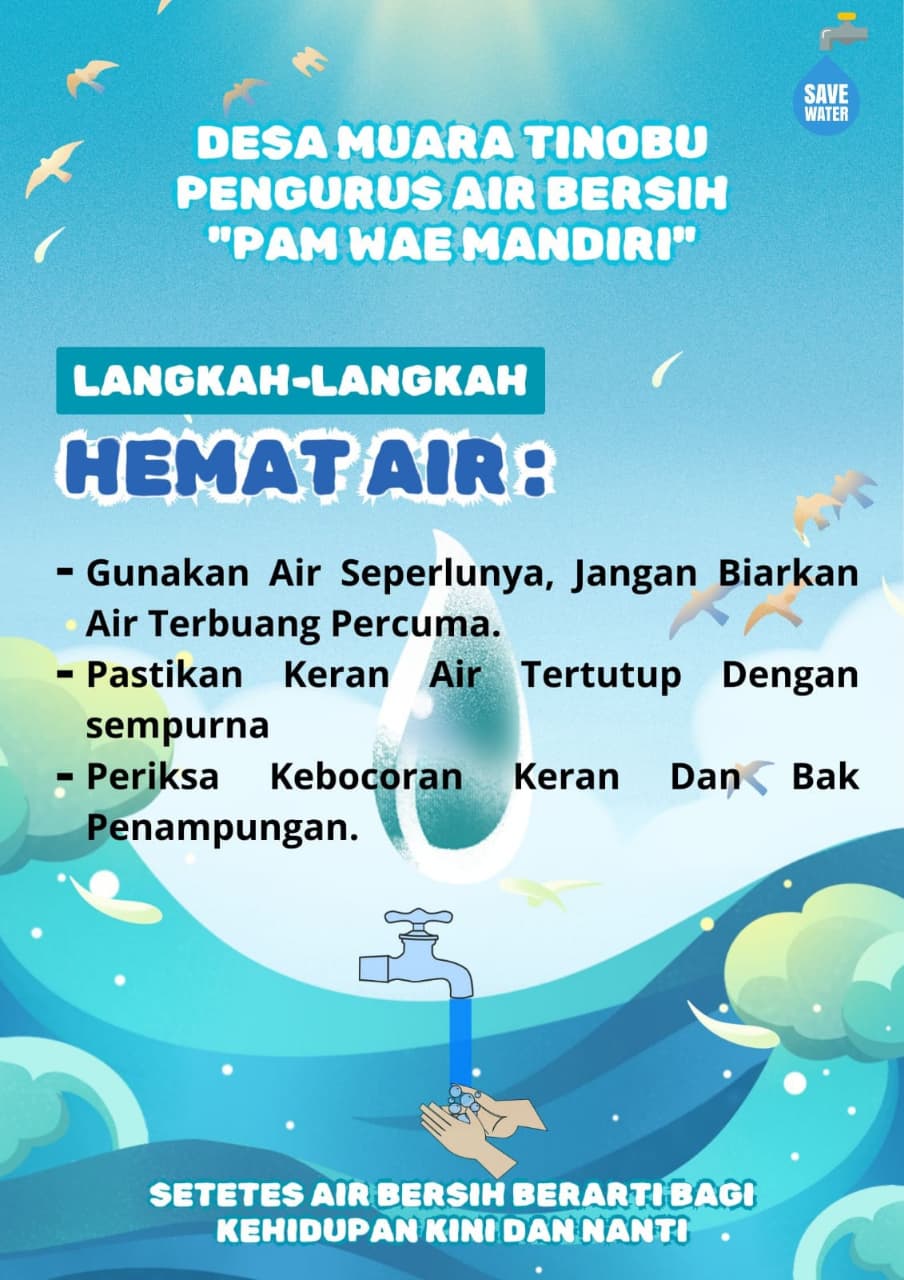 himbauan untuk seluruh masyarakat Desa Muara Tinobu agar menggunakan air secukupnya jangan lupa tutup kran air ketika sudah tidak digunakan