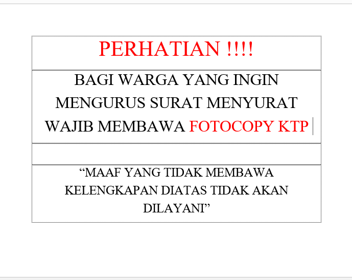 BAGI WARGA YANG INGIN MENGURUS SURAT MENYURAT WAJIB MEMBAWA FOTOCOPY KTP